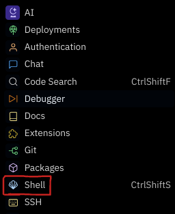Find the "Shell" in the tools menu